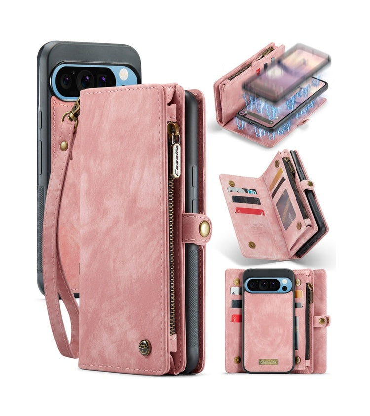 Detachable Leather Wallet Phone Case Pink Pixel 10 Pro XL