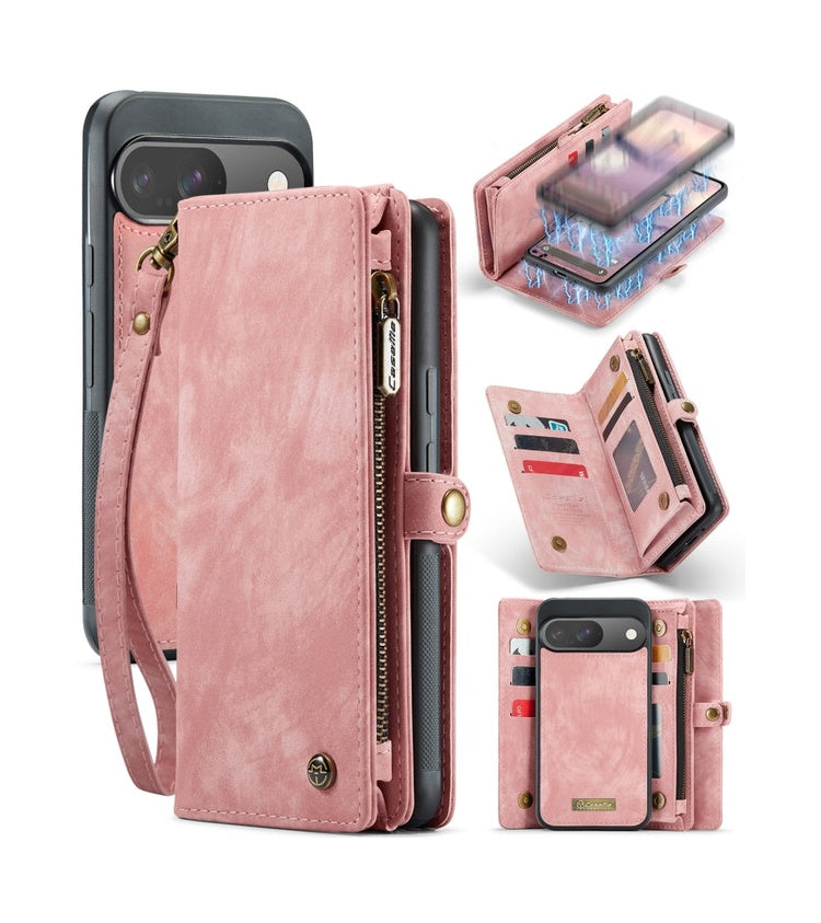 Detachable Leather Wallet Phone Case Pink Pixel 9 Pro