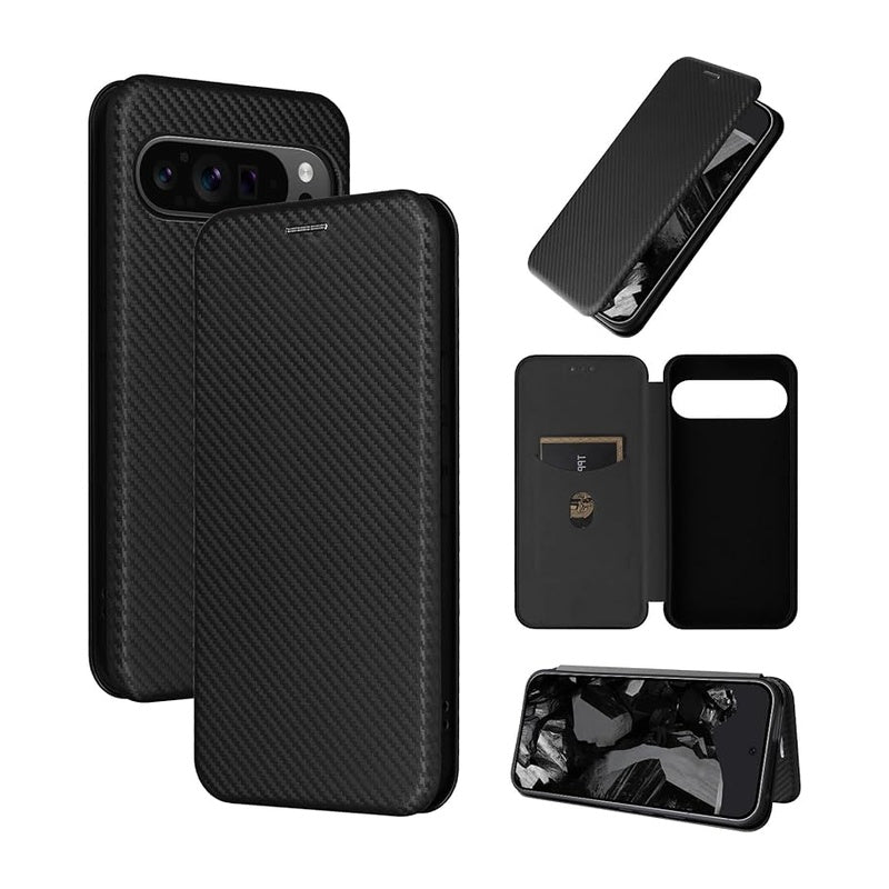 Slim Carbon Fiber Flip Wallet Case Cover Black Pixel 9 Pro XL